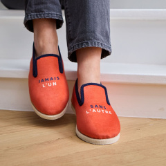 Découvrez notre nouvelle collection de charentaises traditionnelles aux motifs uniques ! Notre charentaise est 100% made in France, en Charente-Périgord, grâce à la technique de fabrication du cousu-retourné. Nous avons allié notre savoir-faire authentique avec les dernières tendances de mode pour vous proposer une gamme de pantoufles incontournable : nu-pieds originaux, espadrilles et espadrilles d'intérieur.